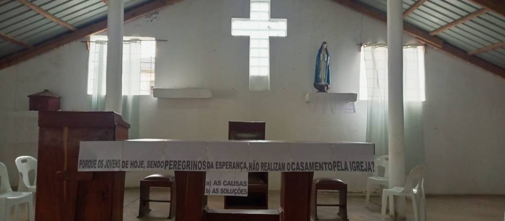 Jovens de Santos Anjos que foram à paróquia da Imaculada Conceição Nhamatanda no domingo passado. Esse era o tema e fizemos trabalhos em grupo e debate.